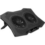 Βάση ψύξης για laptops έως 18″, εξοπλισμένη με δύο ανεμιστήρες 110mm και δύο θύρες USB. Είναι λεπτή και ελαφριά, για εύκολη μεταφορά ενώ έχει την δυνατότητα ρύθμισης ύψους και κλίσης, για καλύτερη εμπειρία προβολής και πληκτρολόγησης. Με διάτρητη μεταλλική βάση, η οποία εξασφαλίζει άψογη ροή αέρα και αντιολισθητική επιφάνεια που αποτρέπει την μετακίνηση της βάσης κατά τη χρήση.